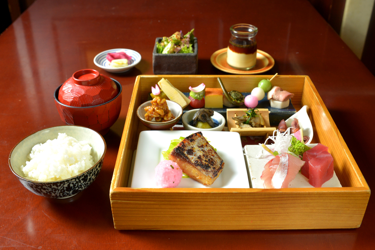 Se trata de un almuerzo gozen donde podrás disfrutar de un delicioso pescado de temporada a la parrilla.