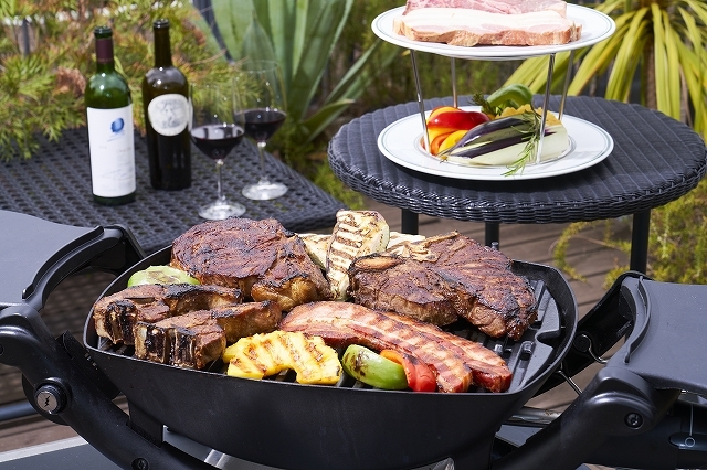 専用熟成庫で28日間を目安にゆっくりとドライエイジングしたプライムTボーンステーキとリブアイステーキに、季節の野菜とビバリーヒルズチョップドサラダが付いたお得な生肉BBQセット。