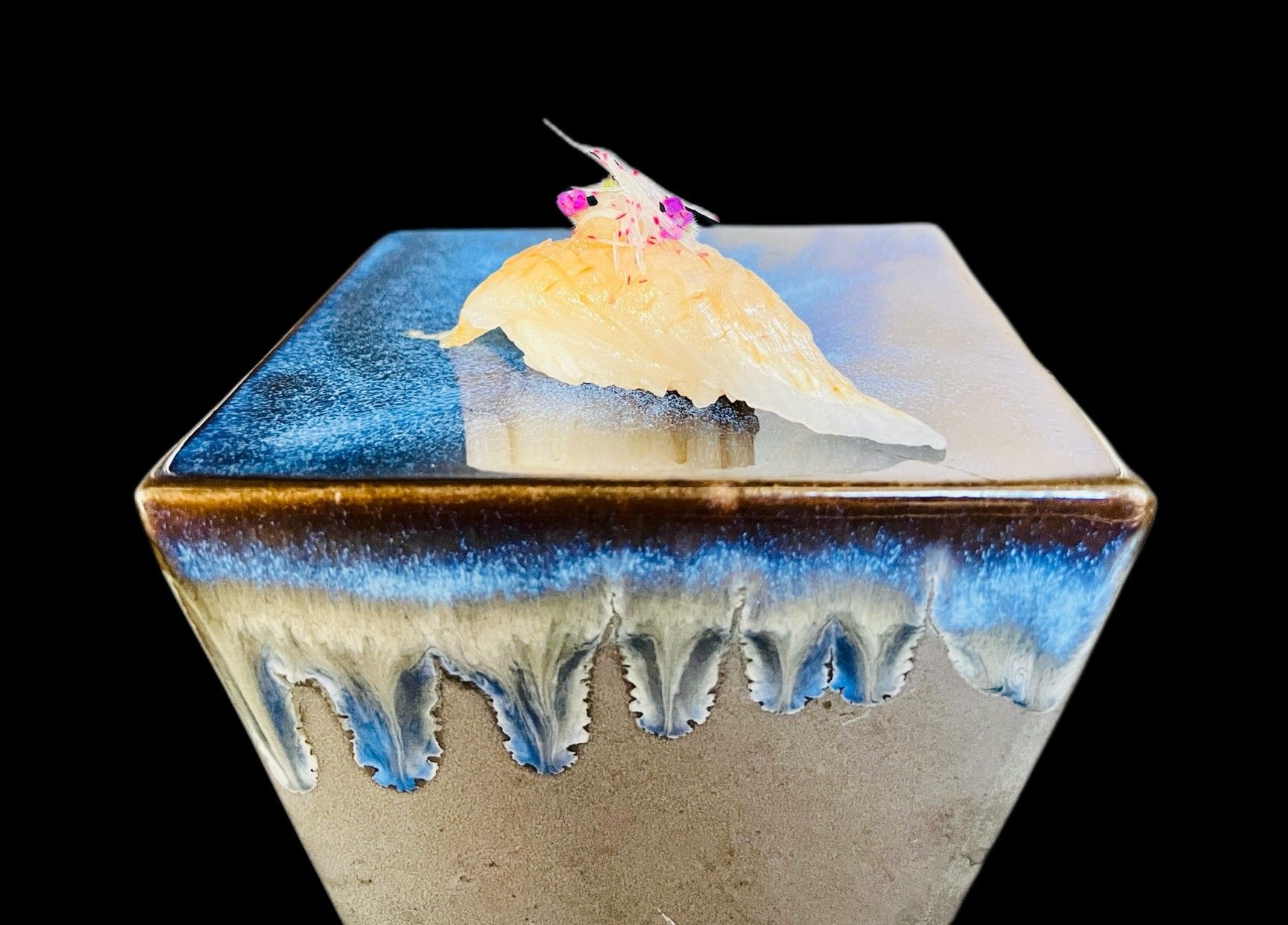 福岡の寿司の名店にて9年間総料理長を務めた店主が、地元九州を中心に選び抜いた魚介類や旬の野菜を、お客様の好みや、その日の気分に合わせて即興でコースにお仕立てさせて頂きます。