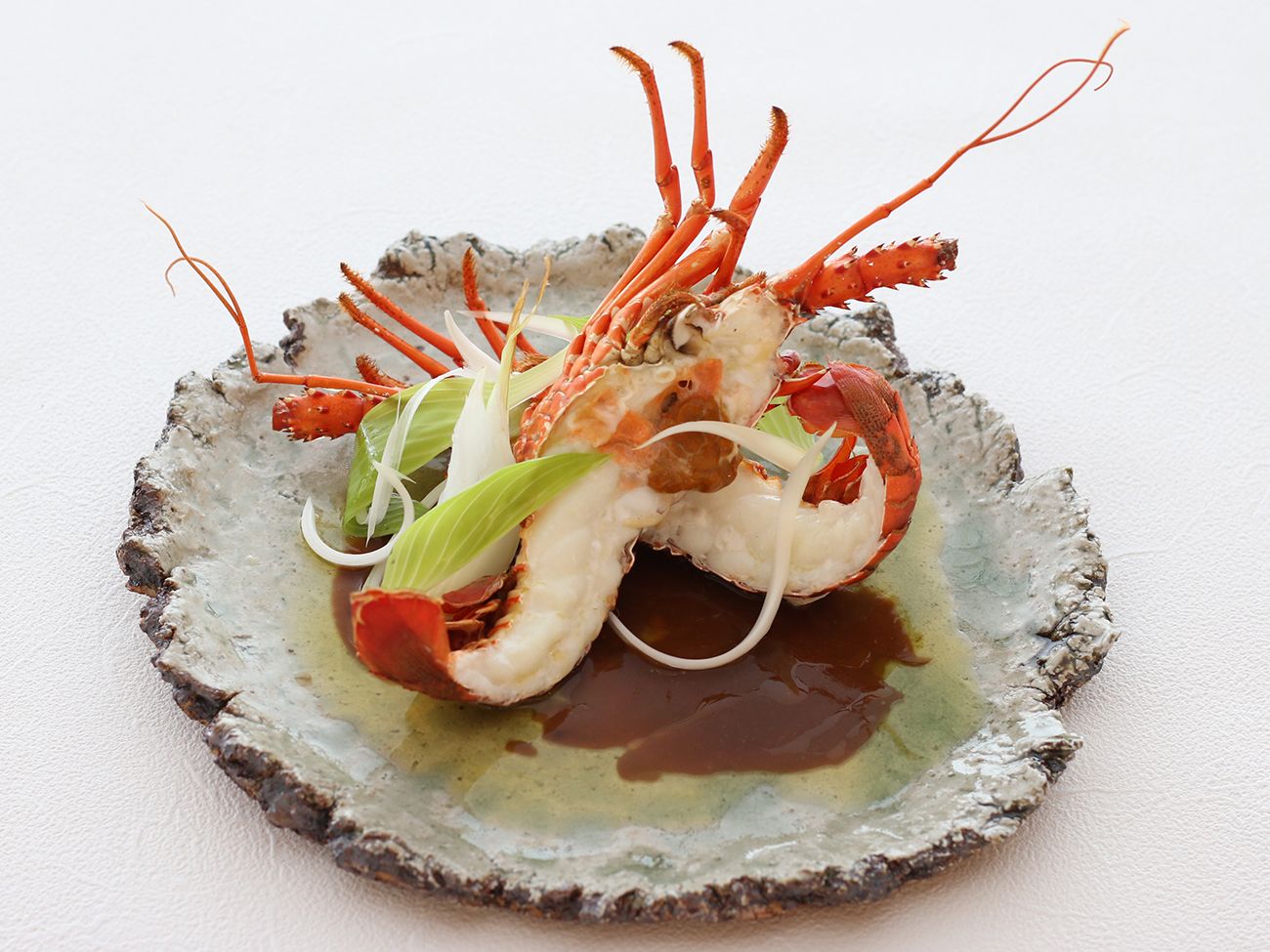 In addition to "Shiogama-yaki Abalone" and a plate of seasonal fish, you will enjoy spiny lobster and Awaji beef filet in a classic style. ◇ANAGA Classique◇ ○Amuse-bouche ○Seafood Gargouille with Setouchi Inland Sea Delicacies ○Spiny Lobster Cive ○Specialty Baked at 250°C for 50 minutes Salt-bake Onion Stuffed with Abalone ○Roasted Awaji Beef Filet ○Island Citrus Cocktail (0% Alcohol) ○Persimmon Tatin (Unplugged) ○Small Baked Confections