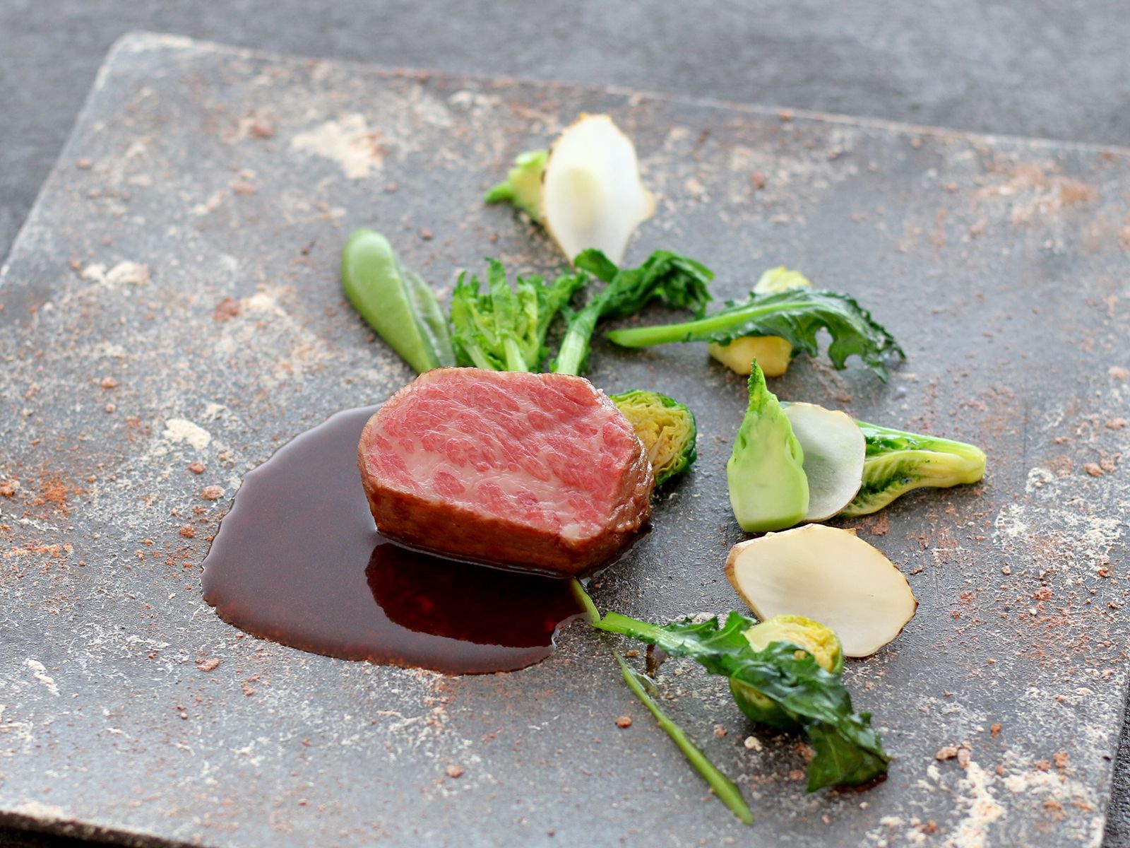 Our innovative-style cuisine blends the essence of Japanese and French cuisine, offering a unique delicacy you can only experience here. ◇Heritiers◇ ○Amuse-bouche ○Red sea bream ceviche with beetroot velvet ○Three-year-old tiger pufferfish broth risotto ○Abalone specialty ○Awaji wagyu beef roti ○Two desserts ○Small baked goods