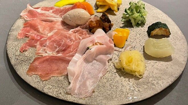 Amuse-bouche Appetizer Homemade bread Hot dish or short pasta Meat dish Long pasta Dessert Cafe & sweets One day's course menu Amuse-bouche Cutlet Noodles Appetizer Reconstructed prosciutto and melon Hot dish Grunt, beans, Calrose rice Meat dish Louiebi pork, eggplant Pasta ~ As much as you like ~ Conger eel, almond, Trapanese Dessert Pineapple, ricotta, pistachio, coconut Cafe & sweets * Contents may change depending on stock.