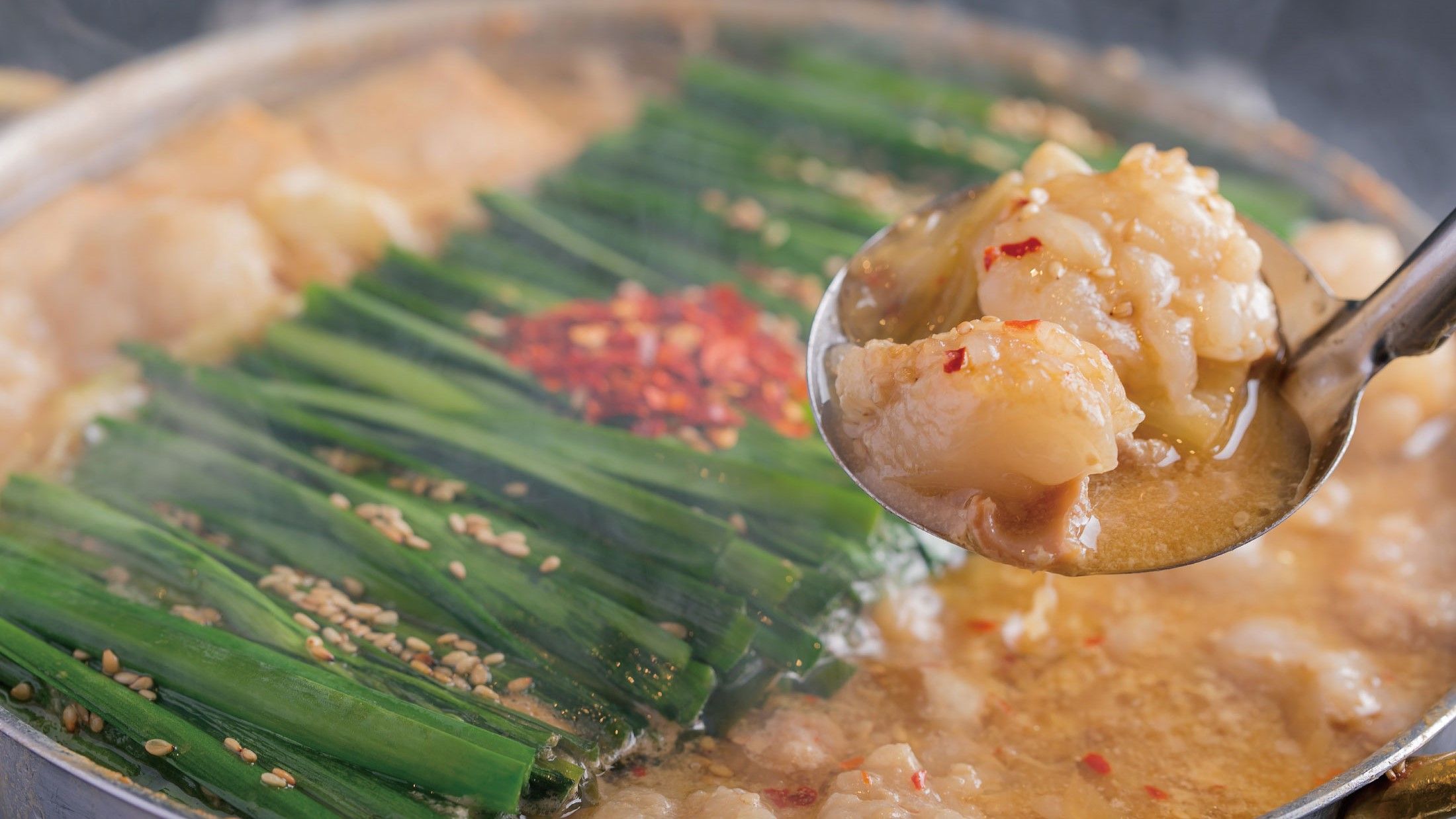 優雅で大人のムードがあるラグジュアリーホテルの、ゆったりとしたテーブル席で本格的なもつ鍋を味わっていただきたい。そんな思いから名物のもつ鍋は、みそ味、しょうゆ味、水炊き風と3種類のスープをご用意しています。どのスープも独自にブレンドして丁寧に仕上げておりますので奥深い味わいです。また、自家製のポン酢で和えた「柔らか牛すもつ」や、とろける旨さの「極上大トロ馬刺し」など博多の逸品もお楽しみください。