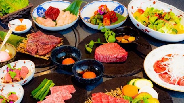 [12 dishes in total] ◆Assorted appetizers◆Moumou salad◆Wagyu beef yukke◆Premium beef tongue◆Seasonal grilled vegetables and lettuce◆Seared sukiyaki with egg yolk sauce◆2 selected meats of the day◆Extreme Chateaubriand◆Moumou beef mabushi (small size/with broth) (egg topping +100 yen) ◆Dessert *Cannot be combined with other courses. *Contents may change depending on availability. *Drinks are not included in the course. Please order from the drink menu.