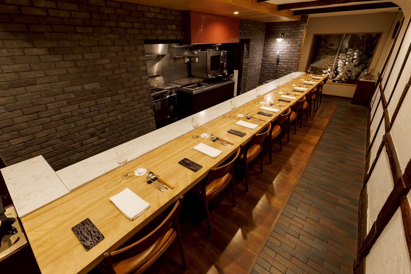旬の食材を使い、和魂洋才の精神を感じるコースをご用意しております。 また、料理に合わせて日本酒・焼酎・ワイン各種アルコールもございます。 スタイリッシュな店内で真空管アンプから流れる音楽とともに、 料理をゆったりと堪能いただけます。