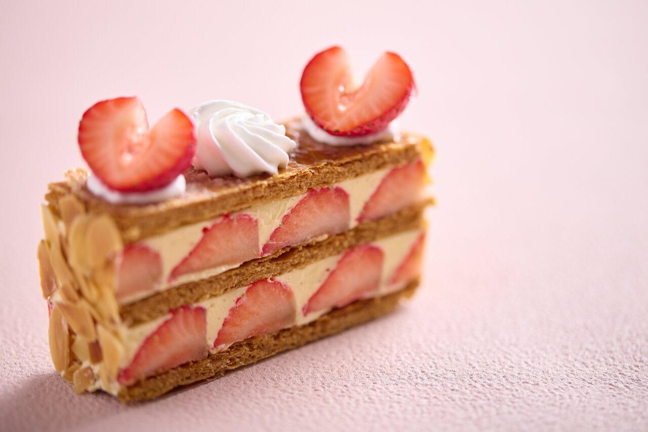 A luxurious cake in both appearance and taste, combining fresh strawberries with vanilla‑scented mousseline. Often described as the French version of shortcake.