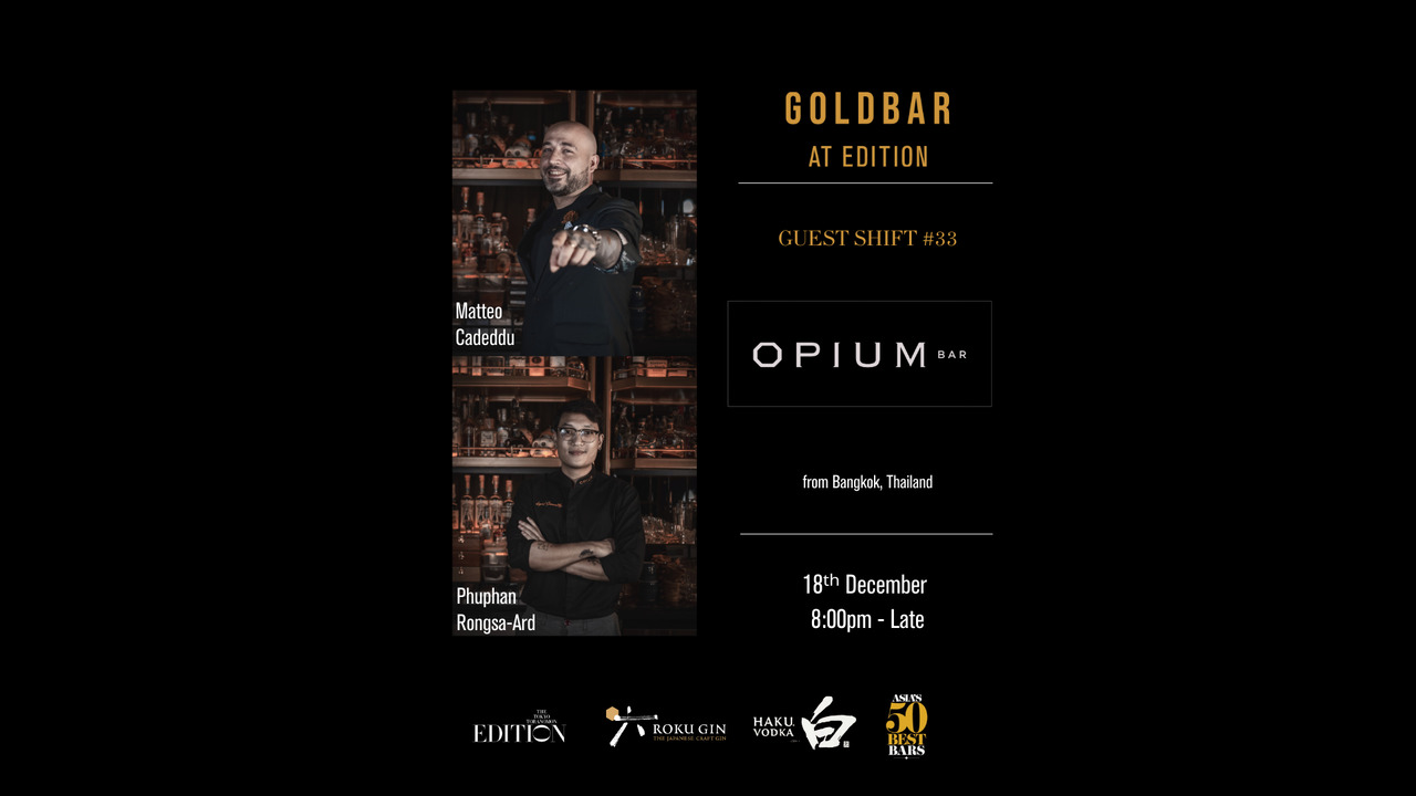 On 18th of December, we are thrilled to welcome Mr. Matteo Cadeddu and Mr. Phuphan Rongsa-Ard from Opium in Bangkok for a special one-night-only guest shift.