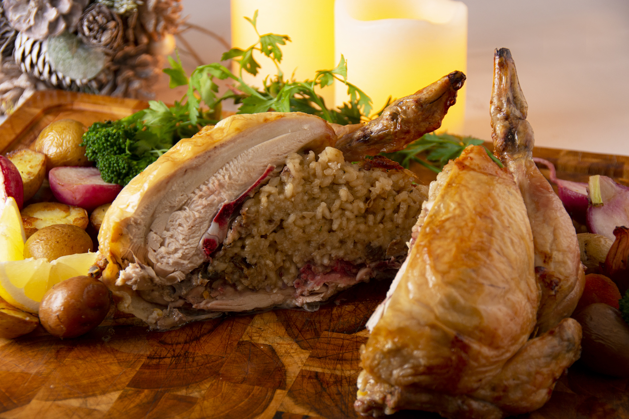 【X'mas TAKE OUT】 ハーフサイズ ポルチーニ茸のリゾットを詰めた国産鶏の特製ローストチキン
