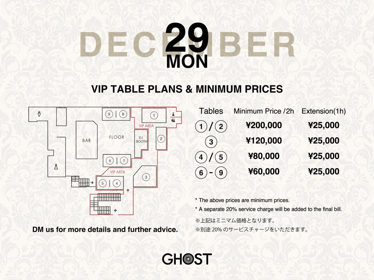 A special pass to enjoy the popular club "GHOST" in a smarter and more luxurious way.