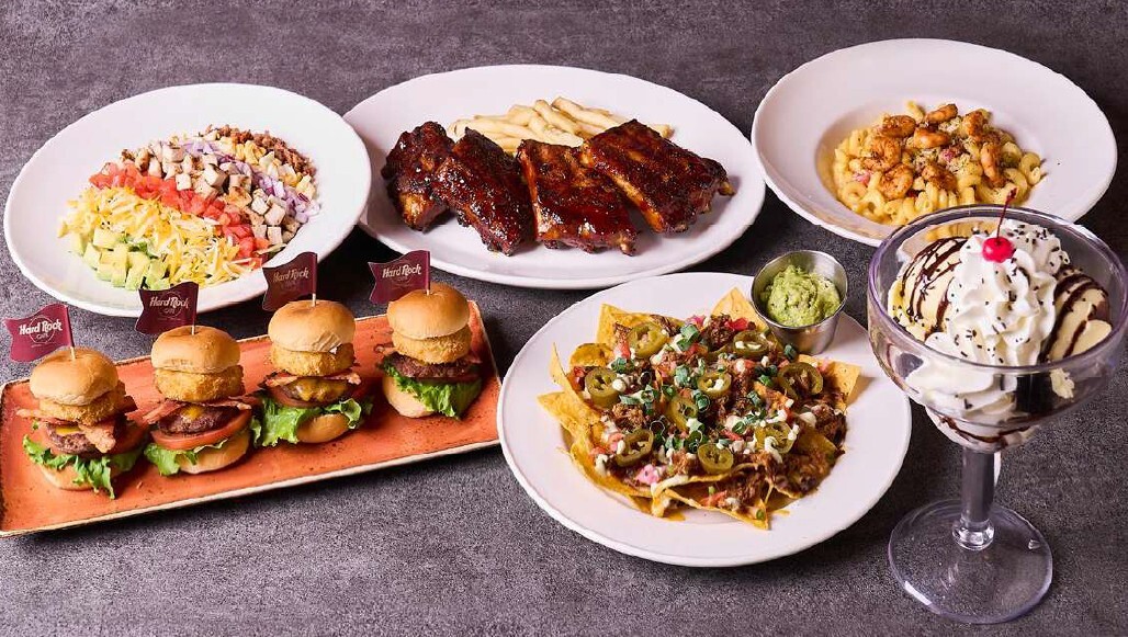 Enjoy Hard Rock Cafe’s signature favorites in this set. It includes two mini hamburgers, a Caesar salad, a plate of French fries, a mini brownie for dessert, and a soft drink with free refills.