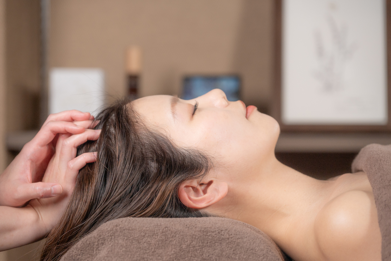 Dry head massage / neck and shoulders, décolleté, and head *Oil is used on areas other than the head