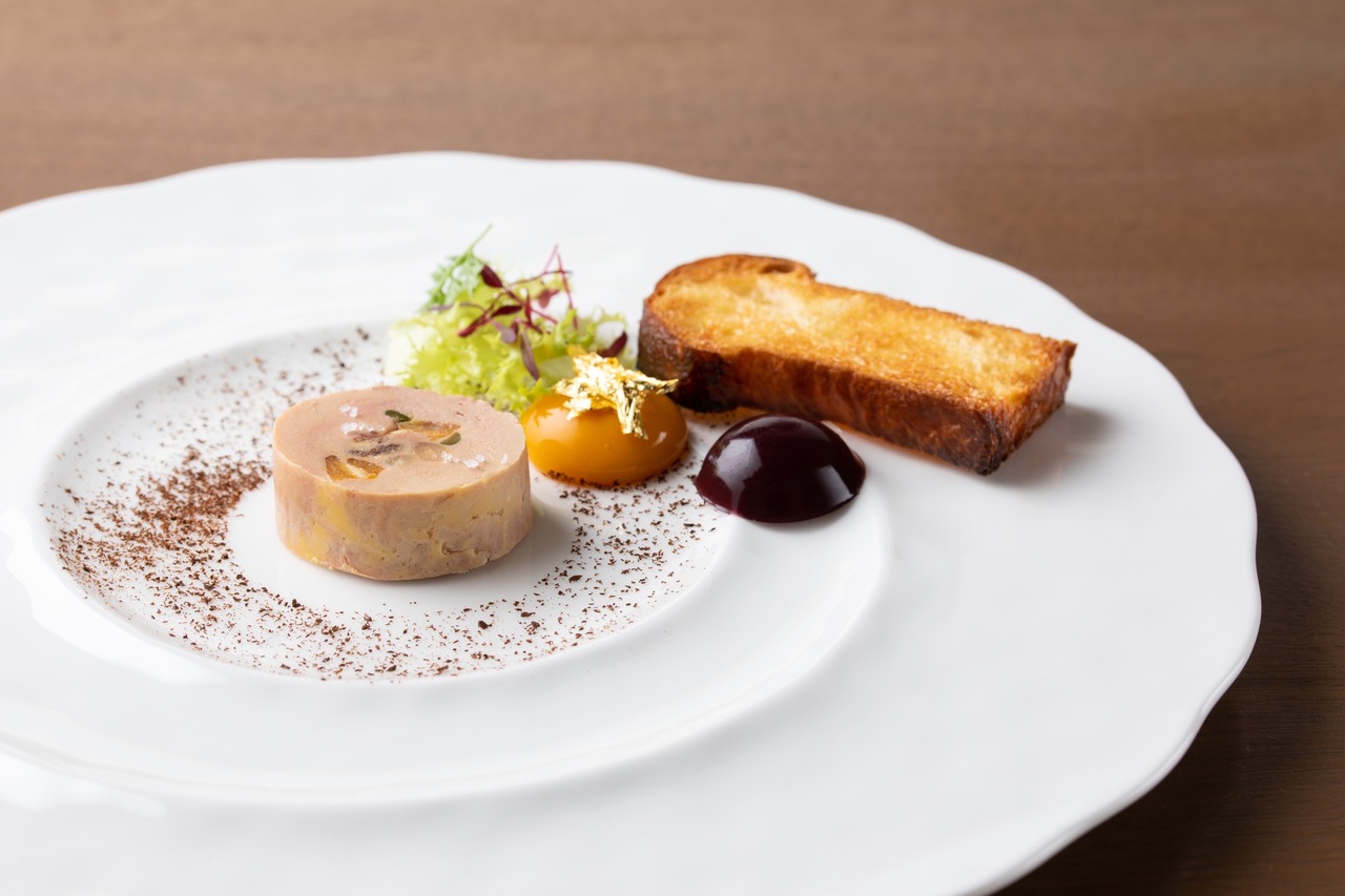 京鴨と白レバーのテリーヌ 彩り野菜のサラダ