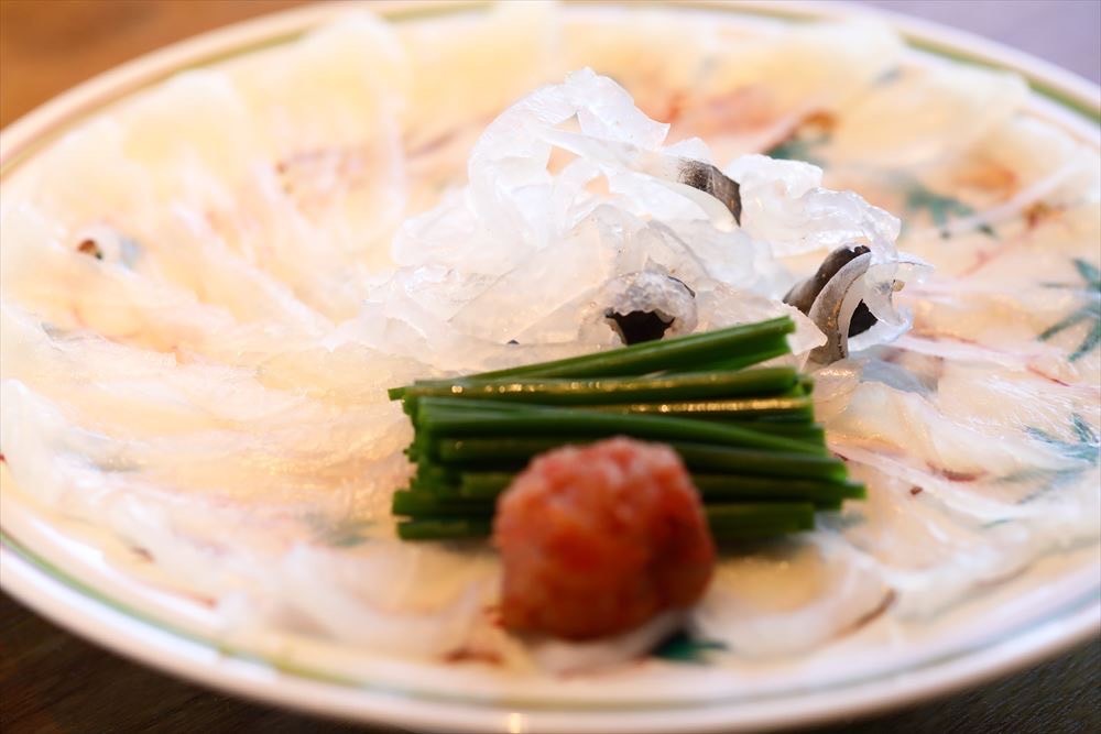 This is a course of wild tiger pufferfish. It will be prepared with care by our head chef, who has a Tokyo pufferfish license.