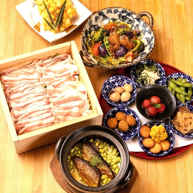 【土日月祝日】限定名物国産豚の蒸籠蒸し×おばんざい3種盛合せなど全9品【2.0h飲み放題付き】 4500円(税込)