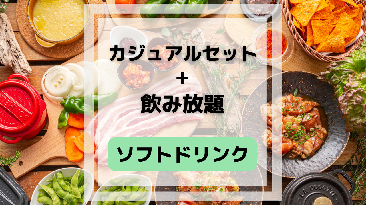 (Correct) A reservation for 4 people: Casual Set with all-you-can-drink alcohol for 3 people + Casual Set with soft drink for 1 person