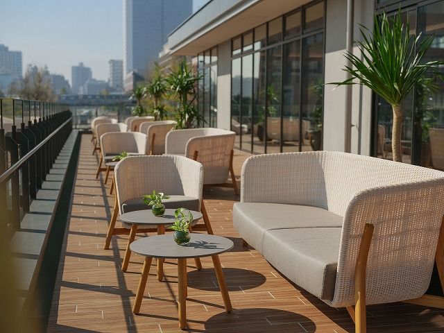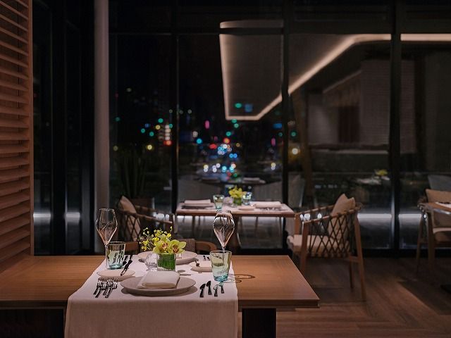 Our set-course dishes use only ingredients produced locally in Kanagawa Prefecture. Come discover the innovative Yokohama-style Western cuisine. The restaurant is equipped with a relaxing interior and terrace seats to enjoy the panoramic Minatomirai cityscape and the sea. Indulge yourself in an extensive selection of wines and cocktails to the accompaniment of live jazz during bar time.