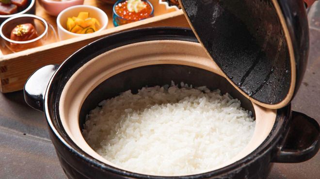 店内はシックで落ち着いた雰囲気の空間です。季節ごとに最もおいしいお米を毎日精米し、土釜を使用することにより甘みとうまみのあるお米をご用意。お米をおいしく召し上がっていただけるように、旬の食材を使った和食を提供しております。季節の前菜や鯛しんじょ、国産黒毛和牛の焼物といった豊富な料理をお楽しみください。旬の食材を使った料理と一緒に、日本酒や季節の限定酒なども取り揃えております。