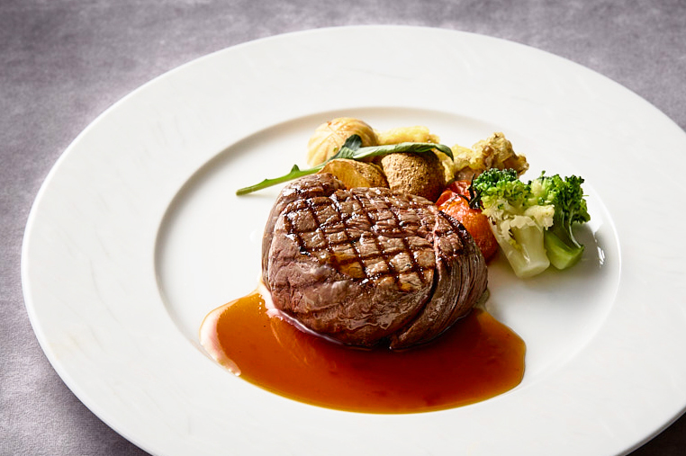 ランチブッフェにメイン料理を追加して、さらに豪華なお食事に。しっとり柔らかく仕上げた牛フィレ肉のステーキ。特製和風ソースが、やわらかな口当たりと上品な旨味を引き立てます。