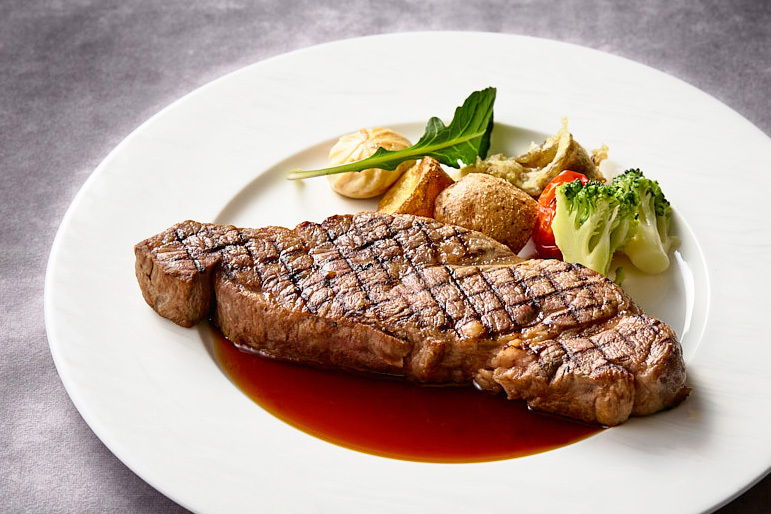 じっくりローストし旨味を閉じ込めたサーロイン。ボリューム感とジューシーな味わいを、赤酒と赤ワインが香る和風ソースでお楽しみください。ランチブッフェにメイン料理を追加して、さらに豪華なお食事に。