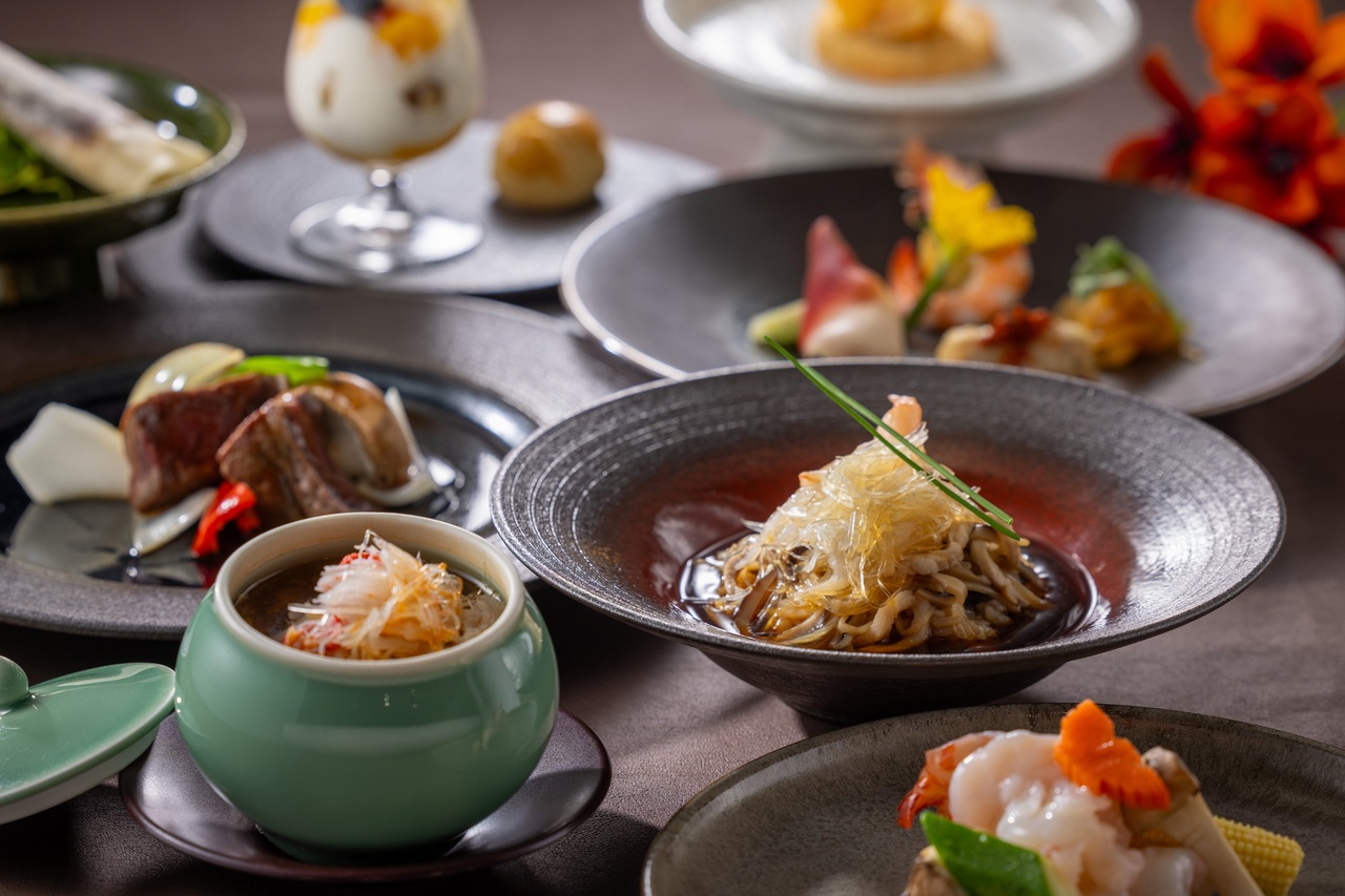 前菜盛り合わせ、ふかひれスープ、デザート2種が付いたお得なプランです。