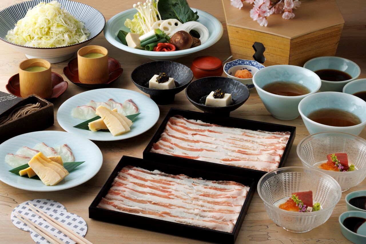Sakura snapper and bamboo shoots, Wagyu beef sirloin, and Iwanaka pork shabu-shabu course