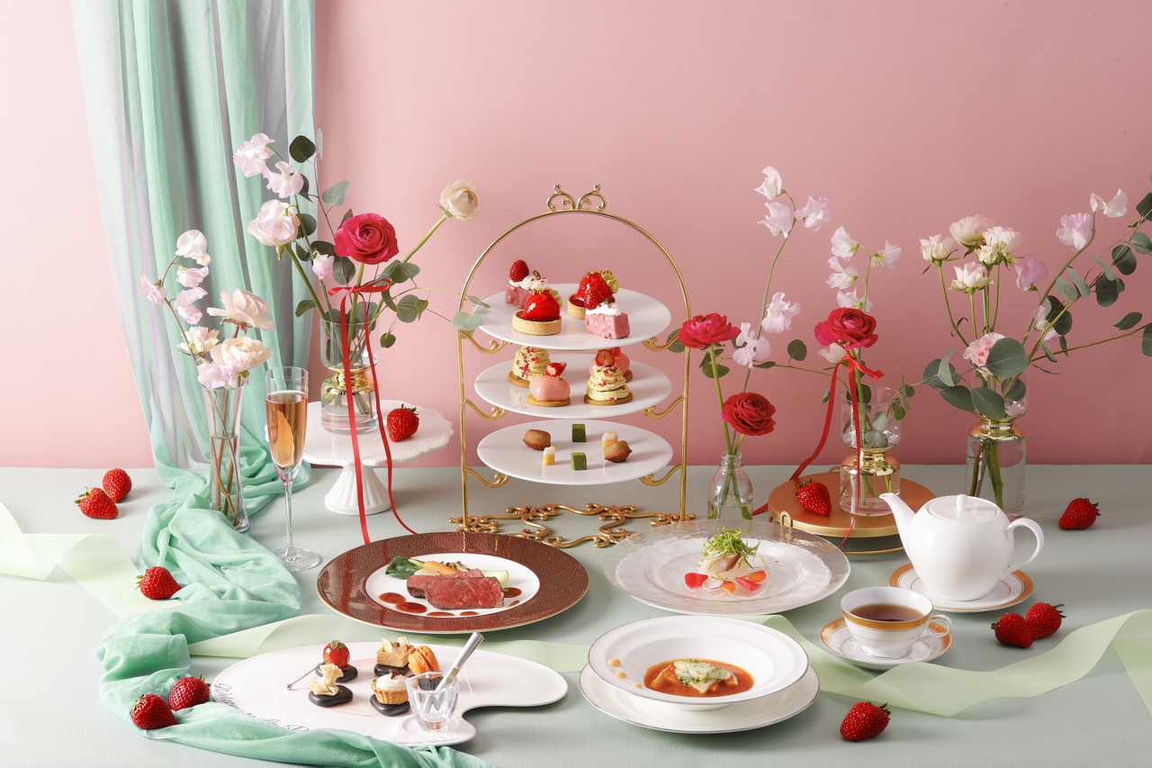 [Weekdays only] Authentic French afternoon tea with ripe strawberries and pistachios, served with rose-scented sparkling wine