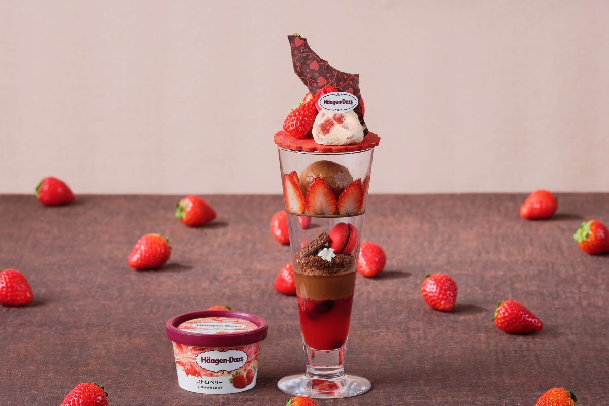 <ハーゲンダッツ ストロベリーとミルクチョコレートの贅沢いちごパフェ>