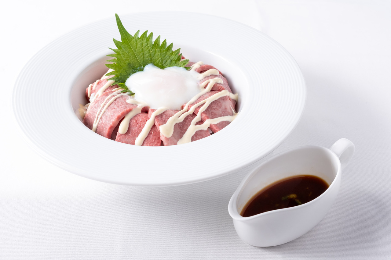Kamikochi Lumiesta Hotel's famous roast beef is made from domestic beef that is slowly roasted to a rosé color at a low temperature. Serve with warmed eggs.