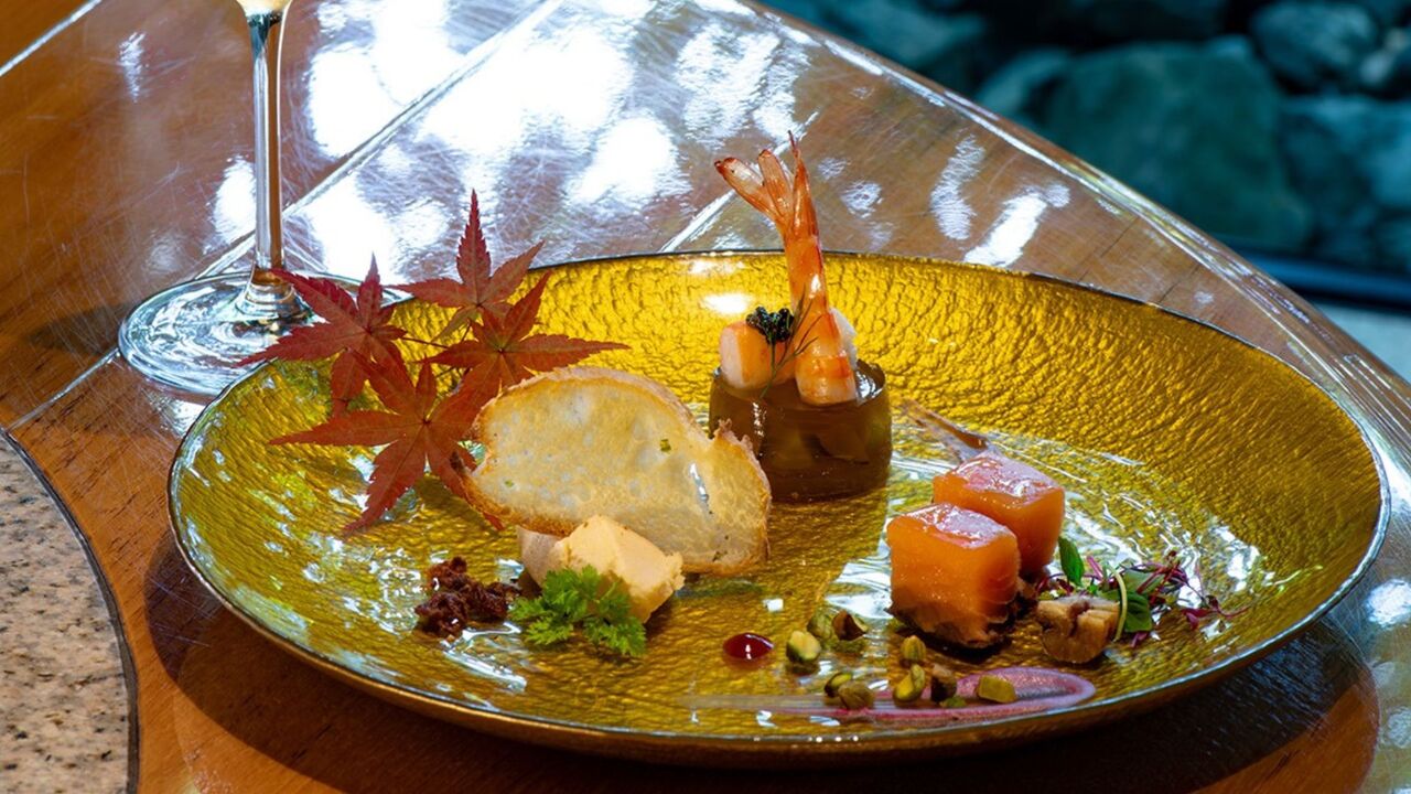 "A luxurious course featuring fresh live abalone and premium red king crab, prepared with seasonal ingredients."