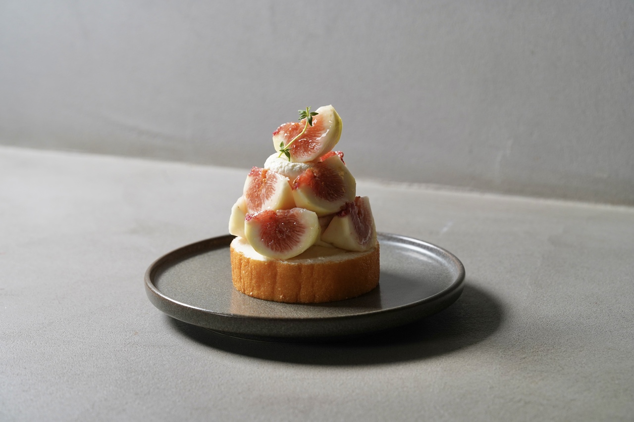 ヘーゼルナッツカスタードクリームがたっぷりのブリュレに紅茶クランブルを乗せました。