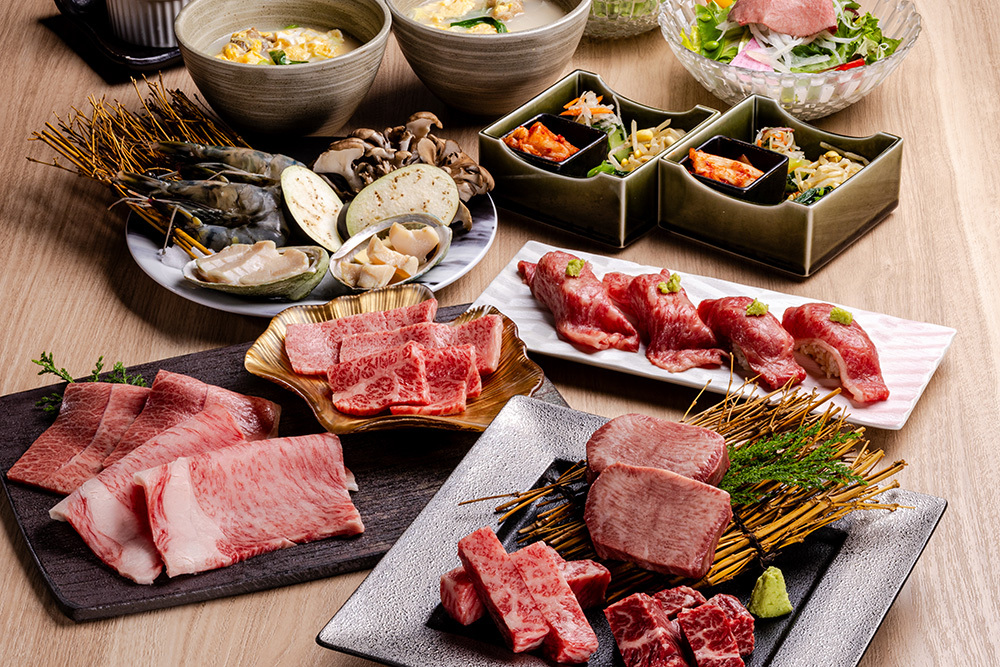 (上タン塩/和牛上ハラミ/上カルビ/上ロース/肩バラ焼きしゃぶ/上赤身焼しゃぶ/薩偶豚バラ/薩偶豚ロース)