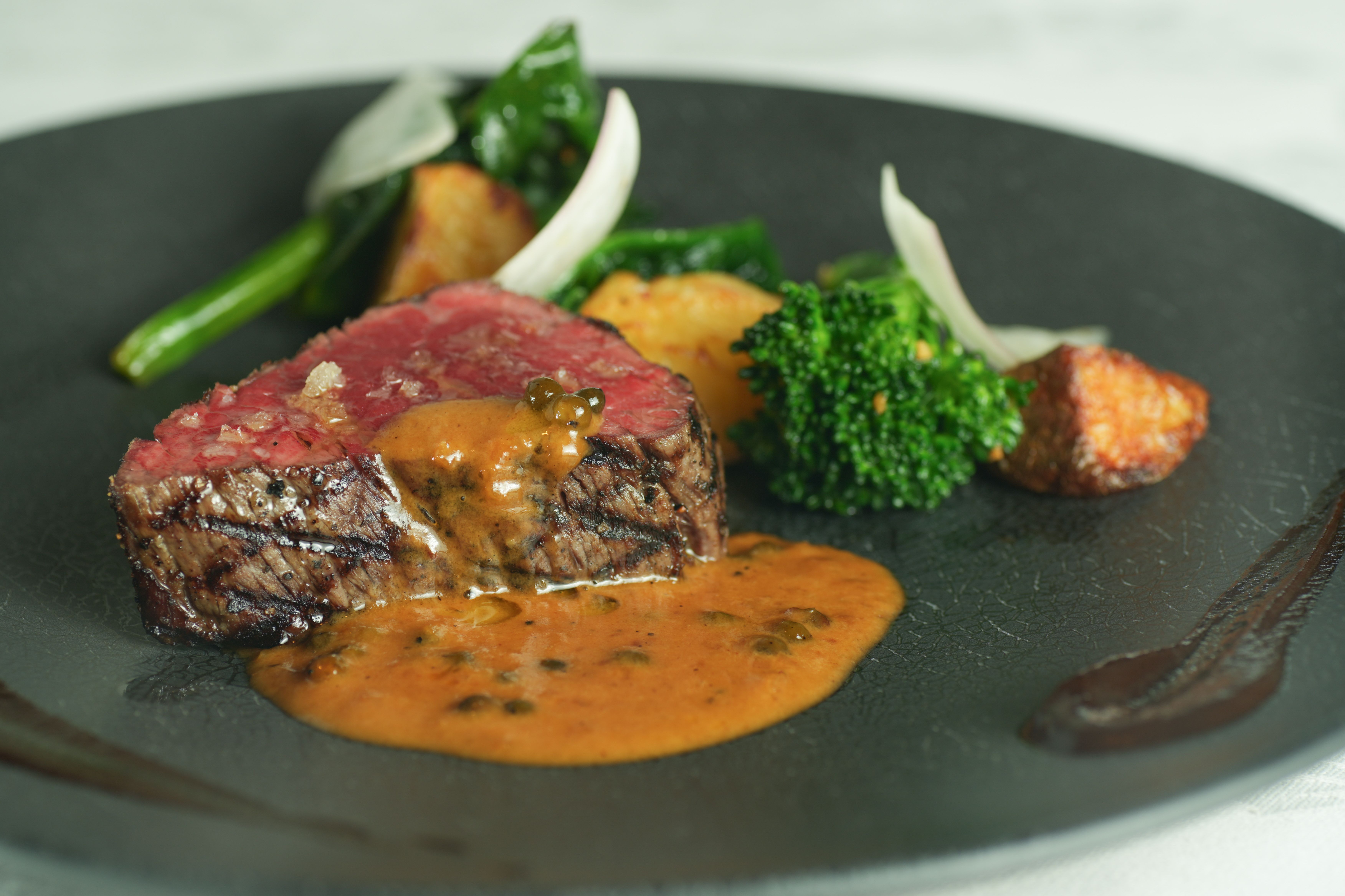 *Optional Appetizer II Tin of Oscietra Caviar, Mascarpone, Lime jelly, Chives, Crisp (MP) ・ Microgreens Flower Salad, Apple, Guanciale, Cinnamon Crisp, Warm Gorgonzola Dressing ・ Skillet Baked Rosemary Focaccia, Caremelized Butter ・ Fresh Ravioli with Local Mushrooms, Bacon Cream, Shimeji Chips, Hazelnuts *Fresh Italian Black Truffles - 2 g for 2,000 JPY ・ Palate Cleanser ・ Main Shinshu Alps Beef Filet Steak, Green Peppercorn Cream, Chimichurri Served with Triple Cooked Duck Fat Potato, Mash, Pickled Red Onion *Fresh Italian Black Truffles - 2 g for 2,000 JPY **Double Portion of Steak 4,000 JPY ・