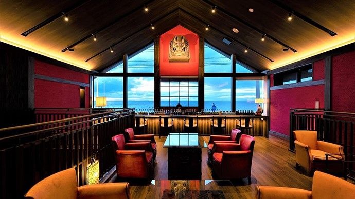 淡路島西海岸の雄大な景色を一望できる 人気のカウンター席に、 ヴィンテージトランクケーステーブルゆったりとしたソファー席。 贅沢な空間で厳選したヴィンテージ古酒と 淡路島の野菜やフルーツ、お肉、お魚といった新鮮な食材を 使用したノンジャンルの創作料理を心行くまでお愉しみ下さい