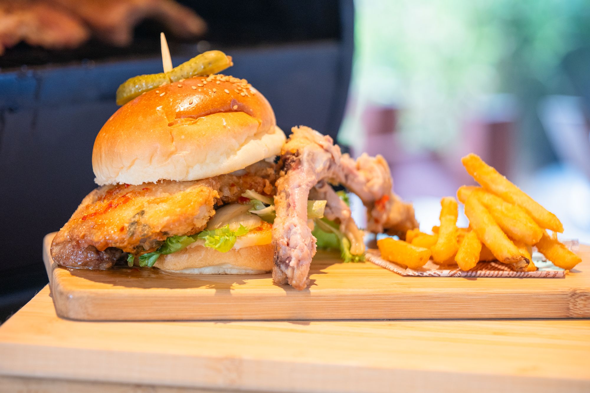 最大50名様までの団体利用が可能。貸切イベントやパーティー、ライブ前後のグループ利用にも最適です。神戸アリーナでの観戦・イベント帰りにも立ち寄れる、アクティブなライフスタイルに寄り添う立地です。 レストラン中央に設けられたライブキッチンでは、豪快に肉や野菜を焼き上げる臨場感を楽しめます。グリルで仕上げたBBQプレートやバーガーは目でも舌でも楽しめる迫力満点の一品になっています。