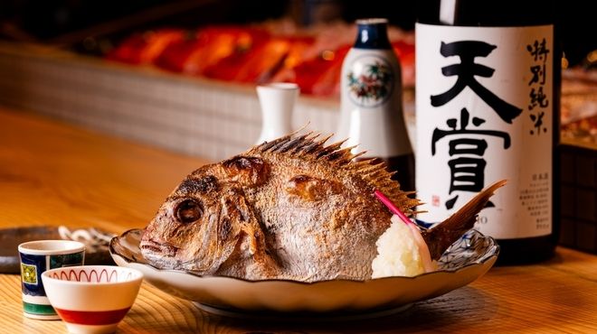 ・Today's fresh fish assortment of 5 kinds ・Specialty: Donko shiitake mushrooms delivered directly from Tsukiyono Mushroom Farm ・Specialty: Whole grilled onion from Awaji ・Seasonal delicacy ・Grilled fresh fish ・Large-sized satsumaage ・Freshly cooked koshihikari rice by Honda Yoshimitsu from Minakami, Gunma Prefecture ・Today's rice accompaniment ・Miso soup