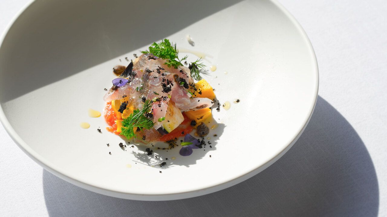 Located on the hotel’s top floor, the main dining room offers sweeping views of Kobe’s cityscape and the Rokko Mountains beyond. Its refined interior, enriched with artistic details, creates an elegant atmosphere, while the open kitchen lets guests watch the chefs’ dynamic culinary performances up close. Enjoy a special moment that delights not only your palate but all five senses.