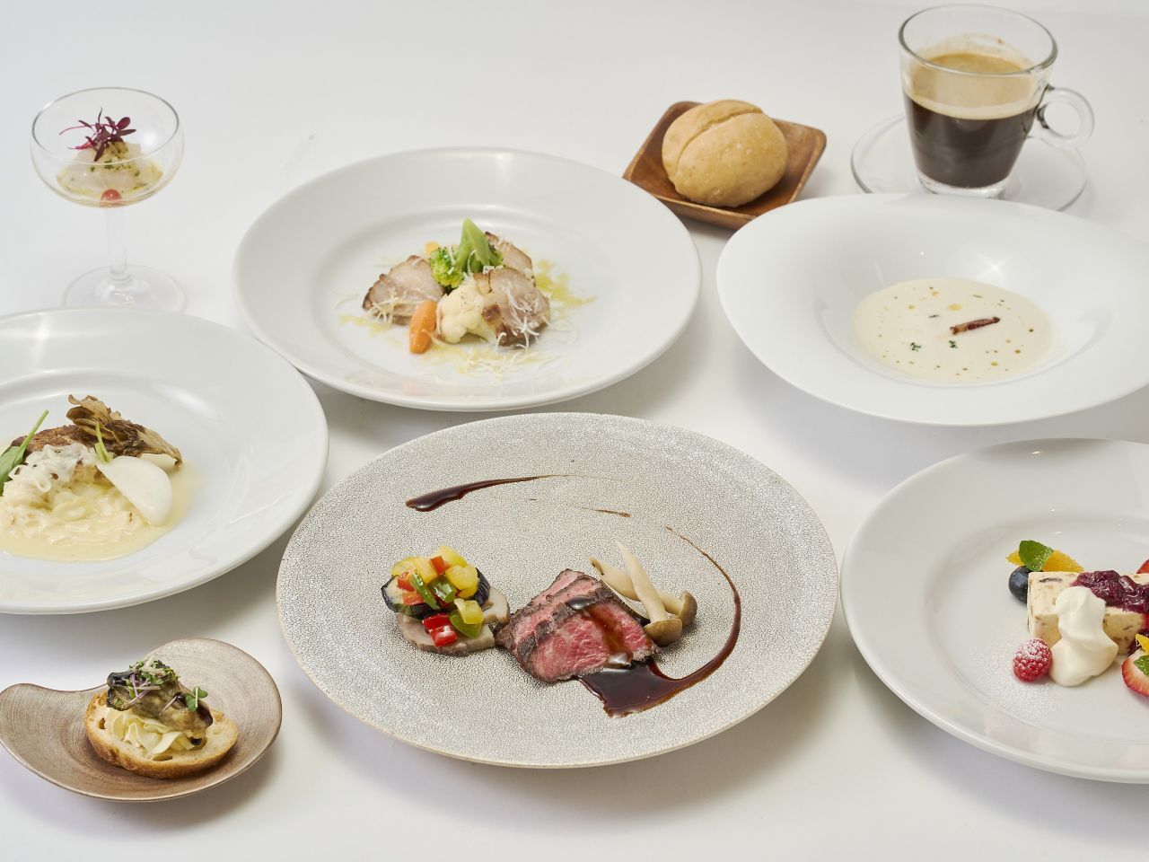 A luxurious 7-course full course meal combining local ingredients and Japanese-Italian cuisine