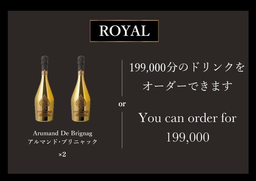 アルマンド2本セットor¥200,000-分ご飲食頂けます。