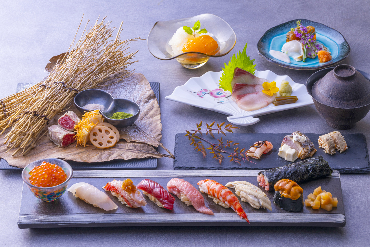 A seasonal lunch course including appetizers, sashimi, eight carefully selected nigiri sushi, dessert, etc. is available for a limited number of people at a special price.