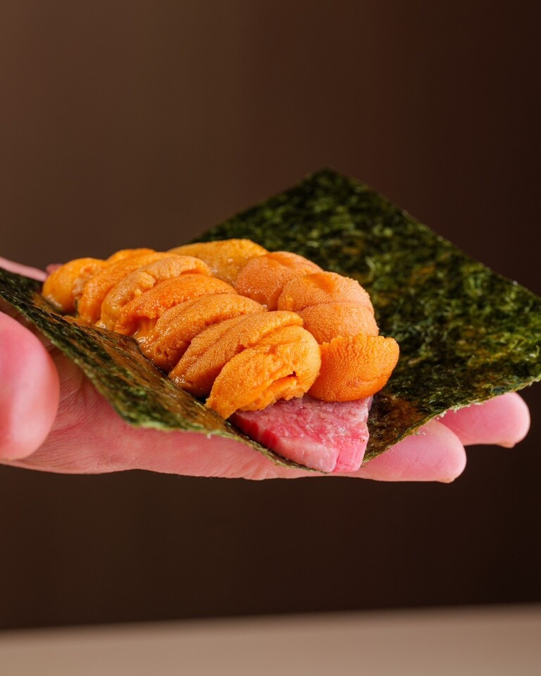 和牛のちかみつ雲丹ユッケドッグ 〜雲丹2列乗せ〜