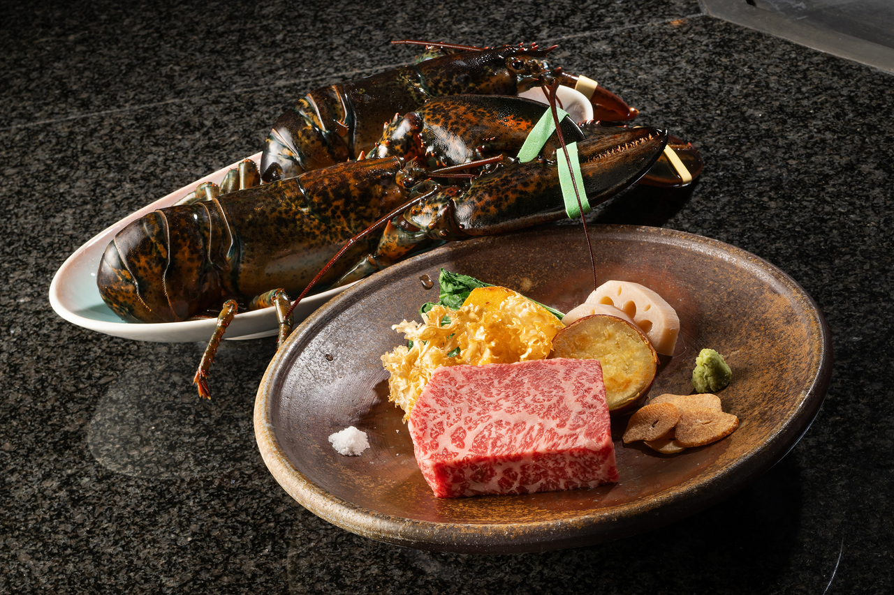 A course featuring live lobster and Okayama’s renowned Chiya beef (千屋牛). Please enjoy it together with the chef’s live performance.