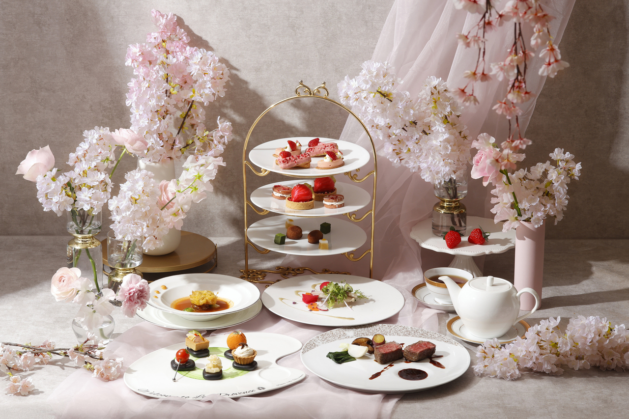 アーティスティックな前菜「パレット・アート・オードブル」から始まる本格フレンチコース。デザートには、春を待ちわびる季節に贈る、華やかな「ストロベリーブロッサムアフタヌーンティー」が登場。瑞々しく甘酸っぱいいちごを主役に、ふんわりと桜の香りを添えたスイーツの数々が麗しい春の余韻を演出いたします。