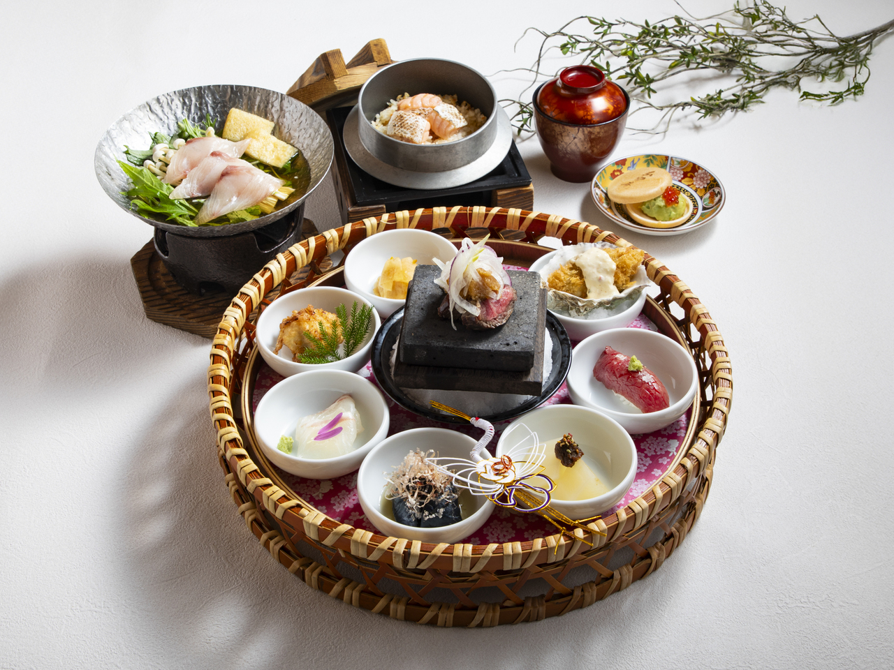 [Edomae Sushi and Flower Basket Lunch] "Colorful 8-Dish Flower Basket Set Meal with Edomae Sushi & Cherry Blossom Sea Bream in Golden Broth Hot Pot" Weekday Special Price: ¥3,990 → ¥3,790 (tax included) के लिए प्रश्न