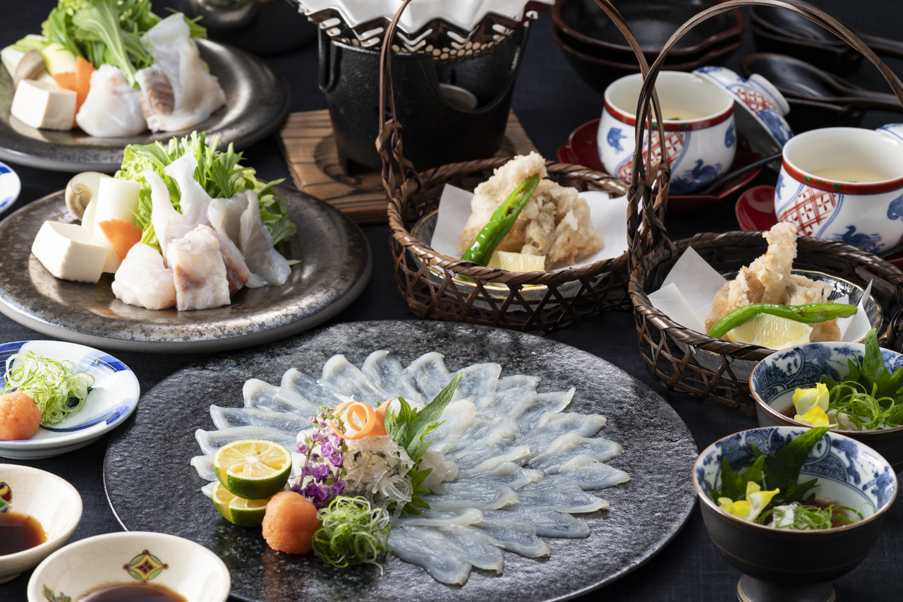 A banquet featuring fugu, a winter delicacy.