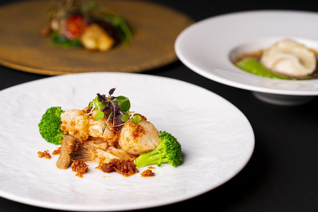 よだれ牛/クラゲヘッドのピリ辛甘酢漬け/大海老のチリソース/アオリイカと彩り野菜のあっさり紫蘇炒め/特製肉シュウマイ/牛肉のブラックビーンズ炒め/豚バラ肉の黒酢酢豚/若鶏とカシューナッツの炒め/大根もちのスパイシー仕立て