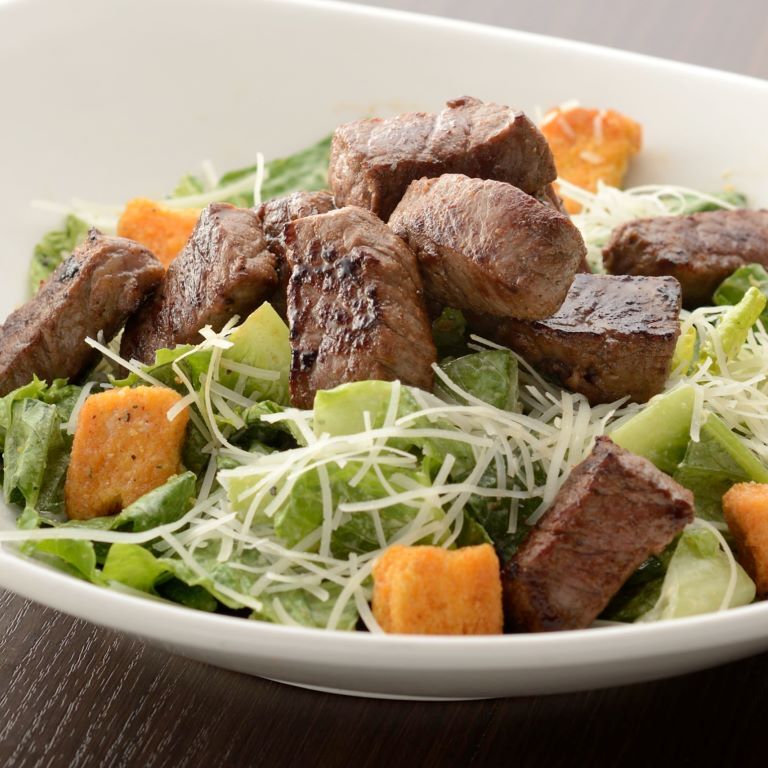 Crisp romaine and freshly made croutons tossed in our housemade Caesar dressing topped with diced steak.