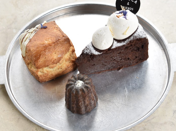 ROCCA&FRIENDSの人気のミルクスコーン、紅茶のカヌレ、季節のケーキ、ドリンク付きのオススメセットです!