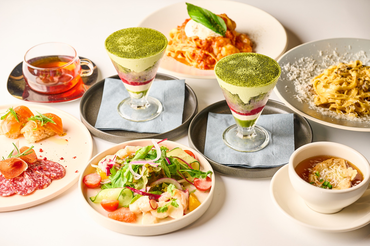 抹茶・煎茶・玄米茶・ほうじ茶など、京都ならではの茶葉を使用したスイーツやセイボリーを、ウェルカムドリンクの上質な香りの玉露や、20種以上のドリンクと共にお楽しみください。