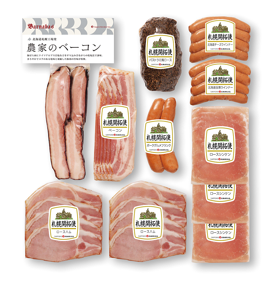 農家のベーコンをはじめとする、ロングセラー商品のセットです。