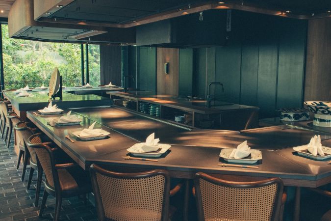 鉄板焼「まつ尾」では、カウンター席の目の前でシェフが腕を振るい、沖縄を中心とした全国各地の上質な和牛を焼き上げます。新鮮な沖縄の島野菜や泊漁港から届く鮮魚を、多様な調理法で仕上げたコース料理をお楽しみください。 様々なご用途にてご利用いただけます。 鉄板焼まつ尾にて贅沢なひとときをご堪能ください。